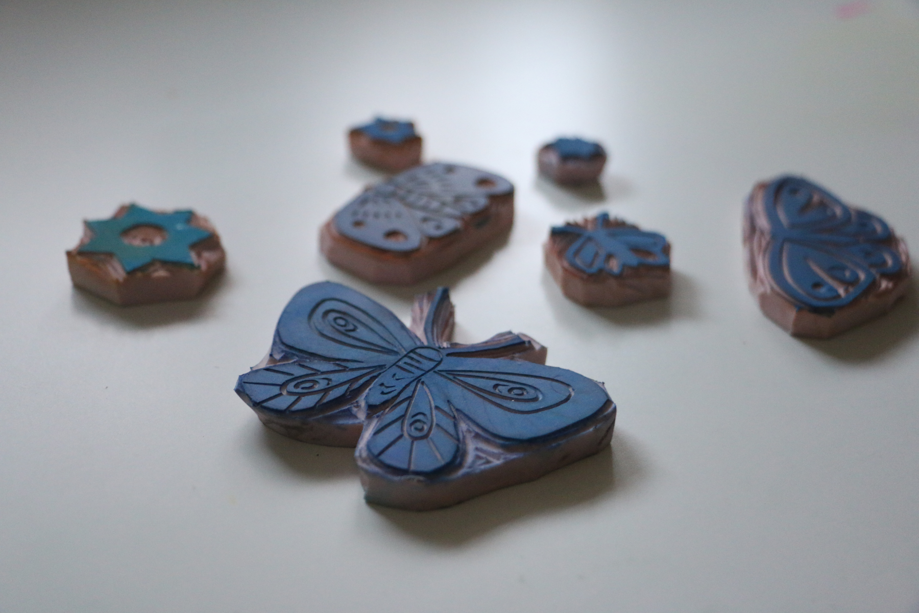 A "Block Print" is an imprint made from a carving. You carve away the negative space of your design, and then apply ink to the remaining surfaces. Once the carving is inked up, you press a paper on top and rub the back of the paper to transfer the image.
